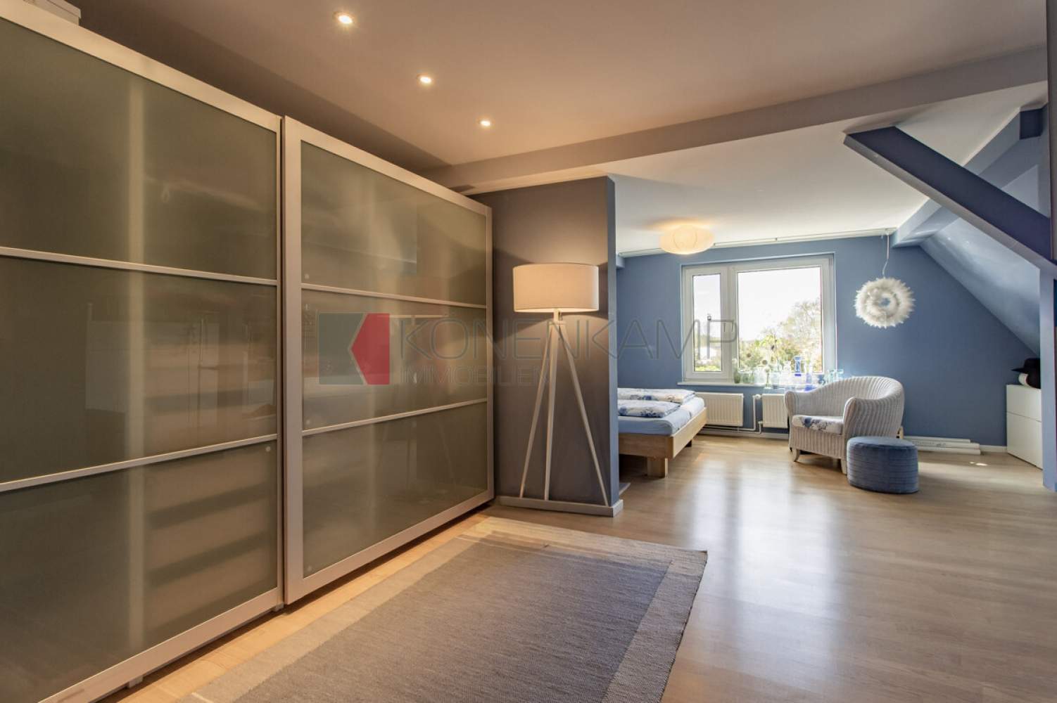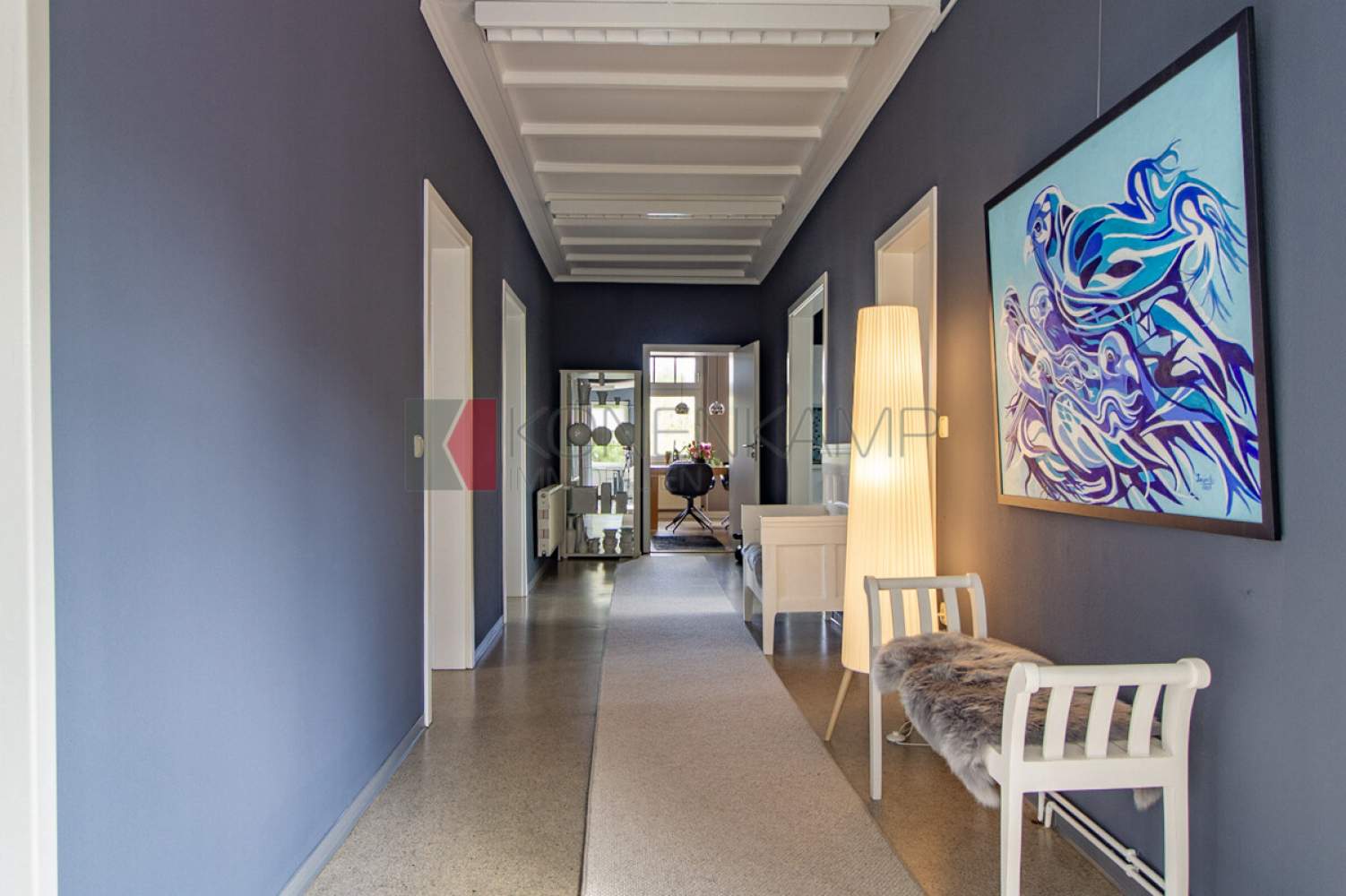 Diese charmante Stadtvilla mit einer Gesamtfläche von ca. 220 qm, direkt am Rande der Stadt, wartet auf neue Besitzer und bietet eine außergewöhnliche Lebensqualität. Wohnen und Arbeiten unter einem Dach und damit eine einmalige Zeit- und Geldersparnis und mehr Raum für sich und die Familie. Auf ca. 140 qm Erdgeschoss befinden sich ein rustikal elegantes Wohnzimmer mit großen Fenstern eines Erkers, Ess- und Wohnbereich auf 42 qm, Küche, kleiner Südostbalkon und 3 weitere Zimmer. Das Dachgeschoss sorgt mit zwei Badezimmern und drei weiteren Zimmern, jeweils mit Dachliegefenstern ausgestattet, für ein wunderbar helles und gemütliches Wohnambiente. Das Haus ist voll unterkellert und bietet ausreichend Platz zum Werkeln mit Hobbyraum, HWR, Heizungsraum, Bad Nr.