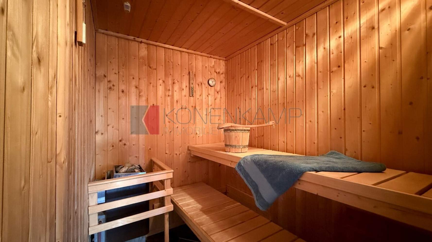 Eine integrierte Sauna sorgt für erholsame Stunden zu Hause. Der ausgebaute Spitzboden bietet zusätzlichen Raum für Hobby oder Homeoffice.