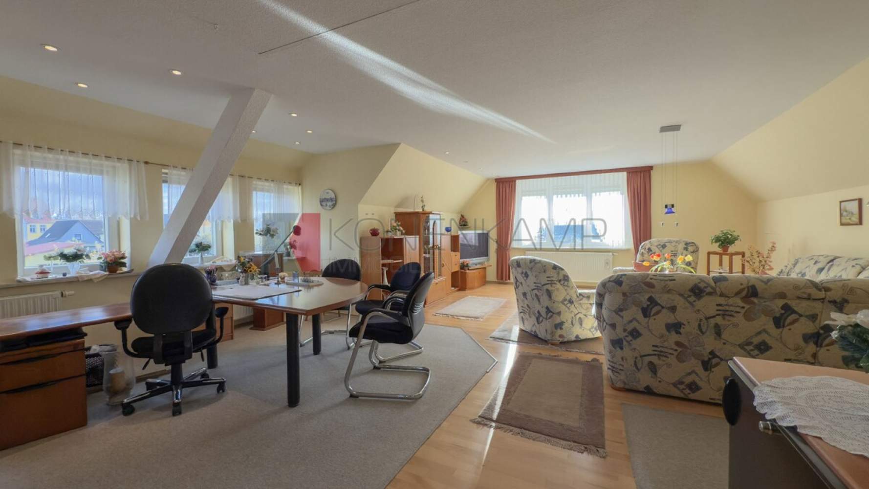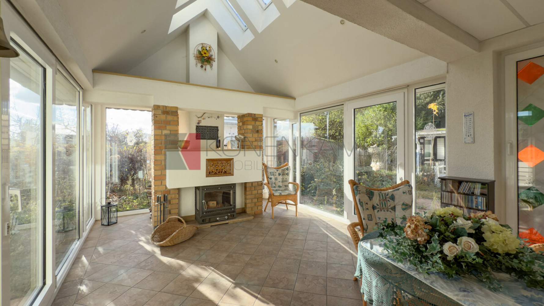 Dieses Haus vereint großzügiges Wohnen, Privatzonen für Entspannung und kurze Wege unter einem Dach. Das Highlight ist zweifelsohne der nach Süden ausgerichtete Wintergarten mit gemauertem Kamin. Ein wunderbarer Ort für gemütliche Abende am knisternden Feuer. Durch einen kleinen Raum, der als hauseigene Bibliothek genutzt werden kann, führt eine stabile Holztreppe in das ausgebaute, großzügige Dachgeschoss. Hier oben finden Sie einen Rückzugsbereich mit einem zweiten Bad. Diese offen gehaltene Ebene kann in mindestens zwei weitere Zimmer unterteilt werden zzgl. Arbeitsplatz. Der Spitzboden ist ebenfalls gedämmt und bietet viel Stauraum.