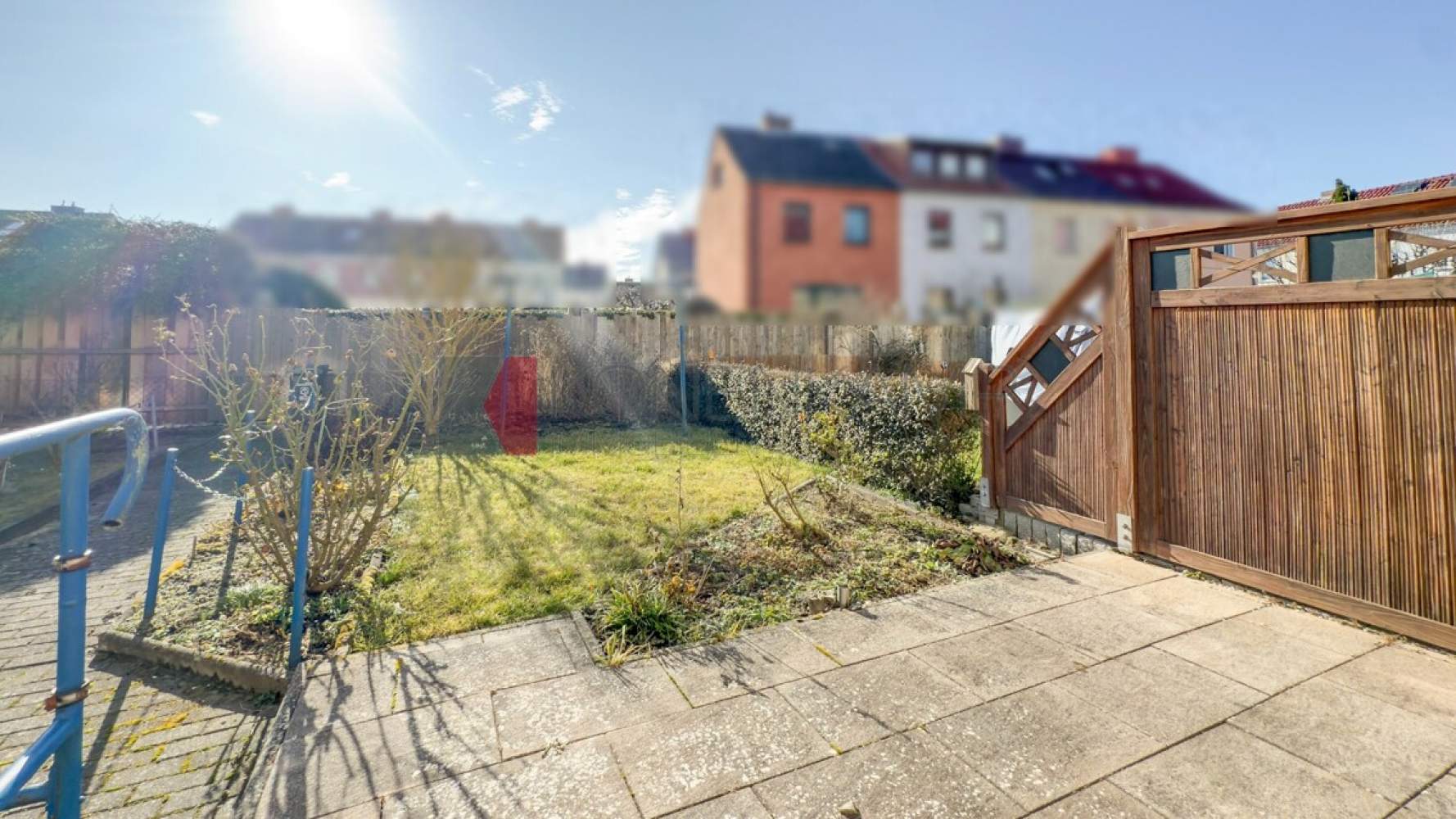 Besonders angenehm ist die Süd-West-Ausrichtung von Terrasse und Garten, die schöne Nachmittags- und Abendstunden im Freien ermöglicht. Der Garten ist aktuell über den Keller erreichbar, ein direkter Zugang vom Wohnbereich lässt sich gut realisieren.