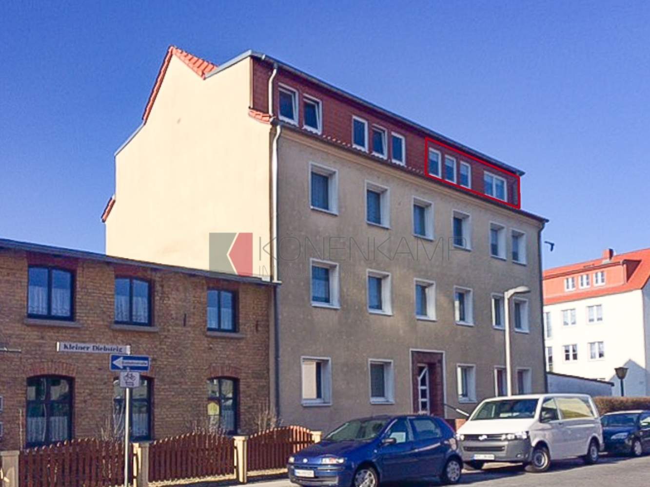Die gemütliche Wohnung im Dachgeschoss ist besonders reizvoll für Singles. Sie wurde vor ca. 10 Jahren komplett saniert. Die Wohnfläche von ca. 43 m² unterteilt sich in zwei Zimmer, Küche, Diele und Bad. Küche und Bad verfügen über Fenster. Stehende Gauben und sichtbares Holztragwerk charakterisieren die Wohnung. Das Tageslichtbad ist mit einer Dusche ausgestattet. Ein Kellerraum gehört ebenfalls zur Wohnung, in dem sich auch der Waschmaschinenanschluss befindet. Der Hof und die Gartenanlage können von allen Mietern der Häuser Kleiner Diebsteig 18 sowie Frankendamm 44 und 46 genutzt werden. Hier gibt es Wäschetrocknungsmöglichkeiten, einen kleinen Grillplatz sowie einen Fahrradschuppen. Durch die Zufahrt der Häuser am Frankendamm gelangen Sie über den Innenhof auf kürzestem Weg zum Einkaufsmarkt oder anderen Einrichtungen in der Straße.