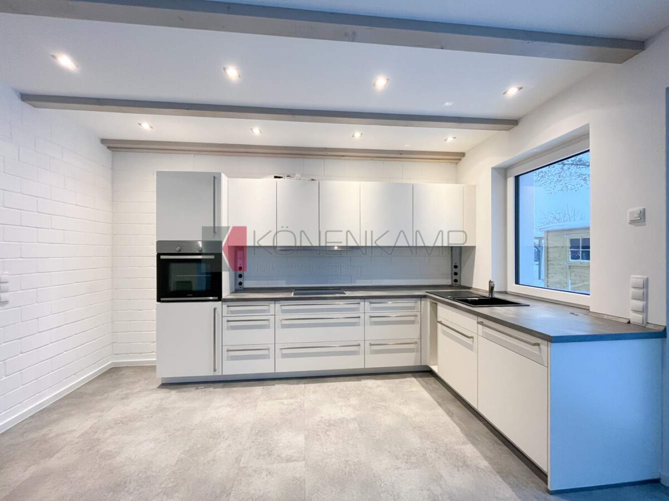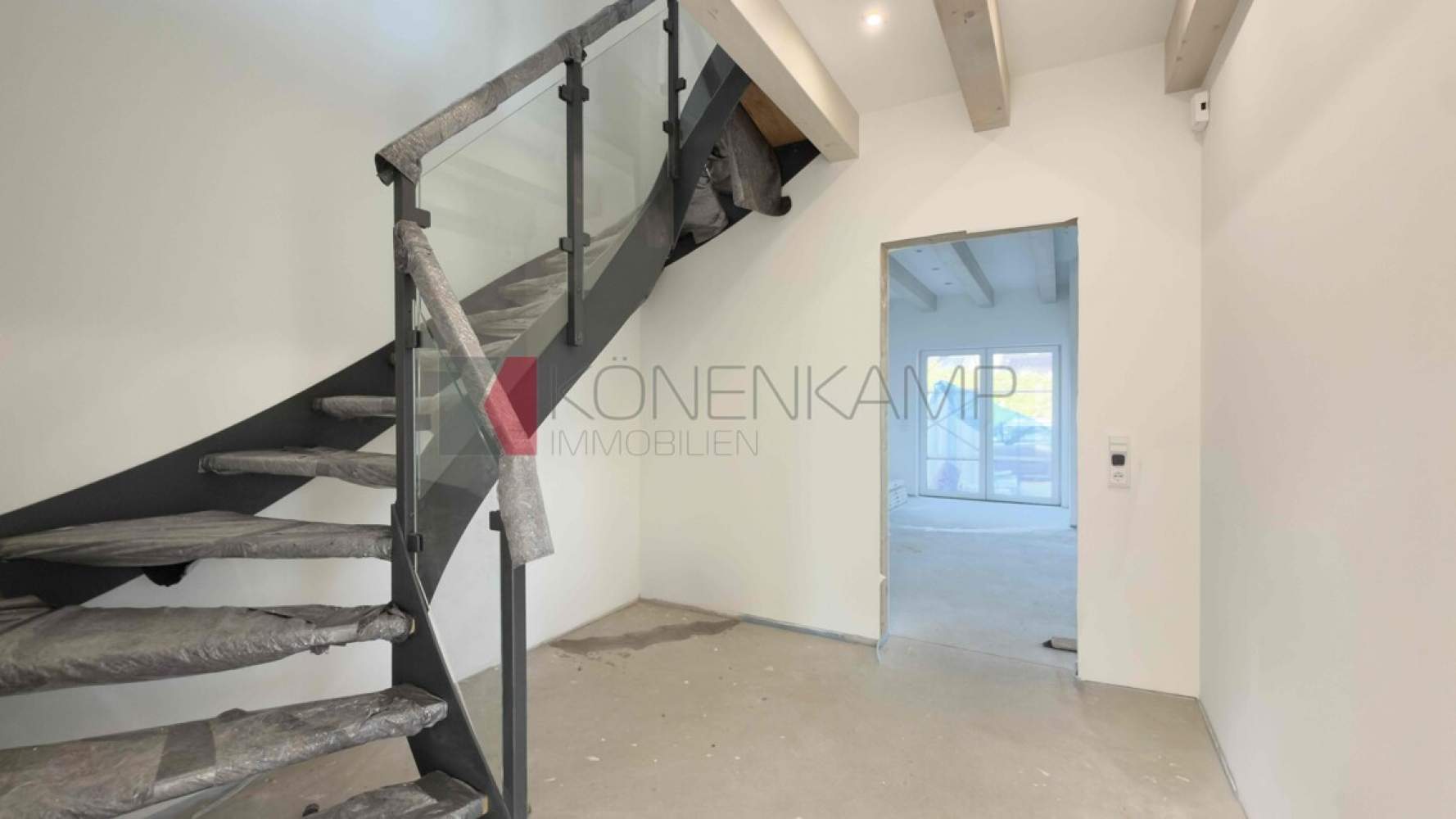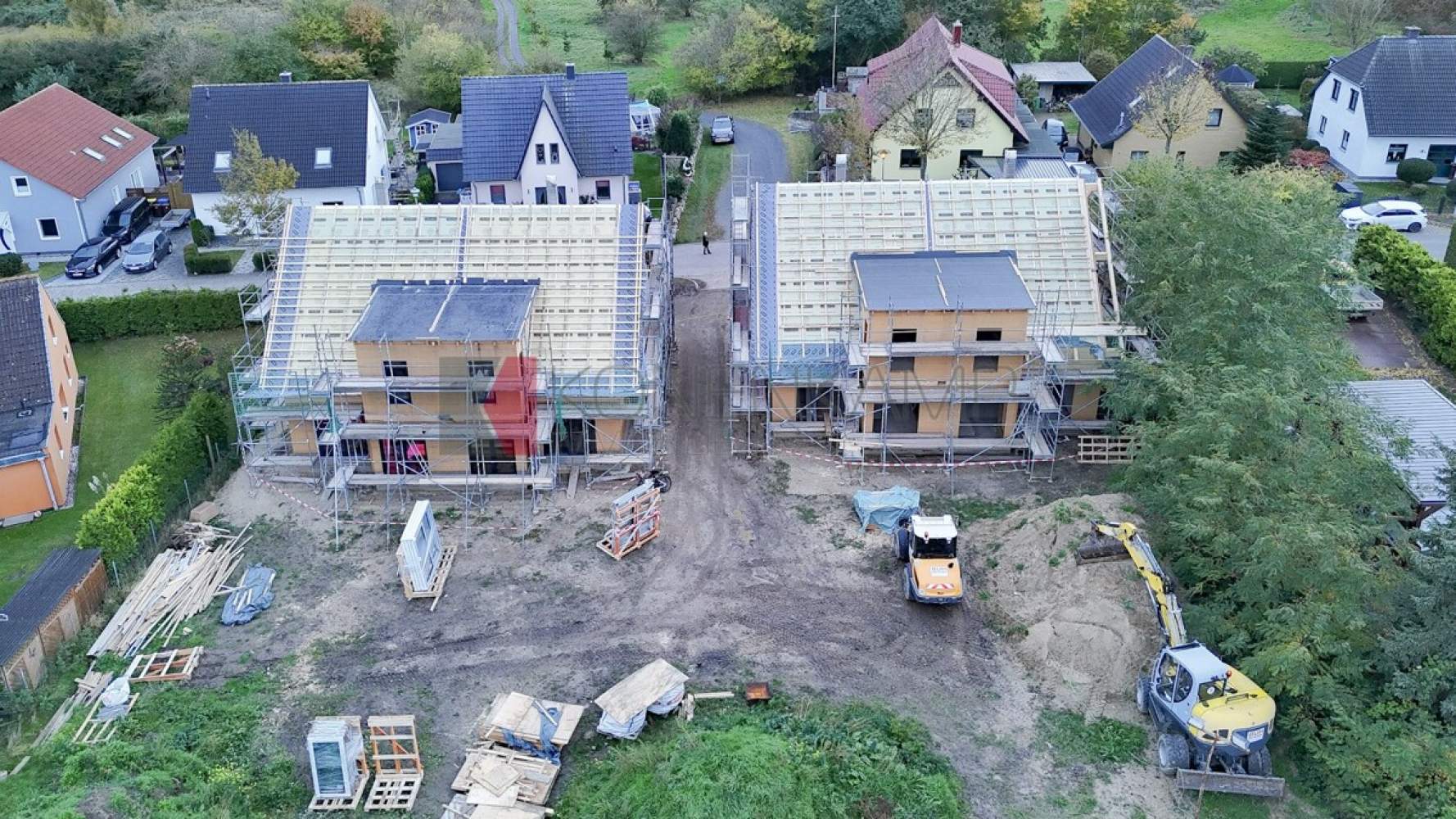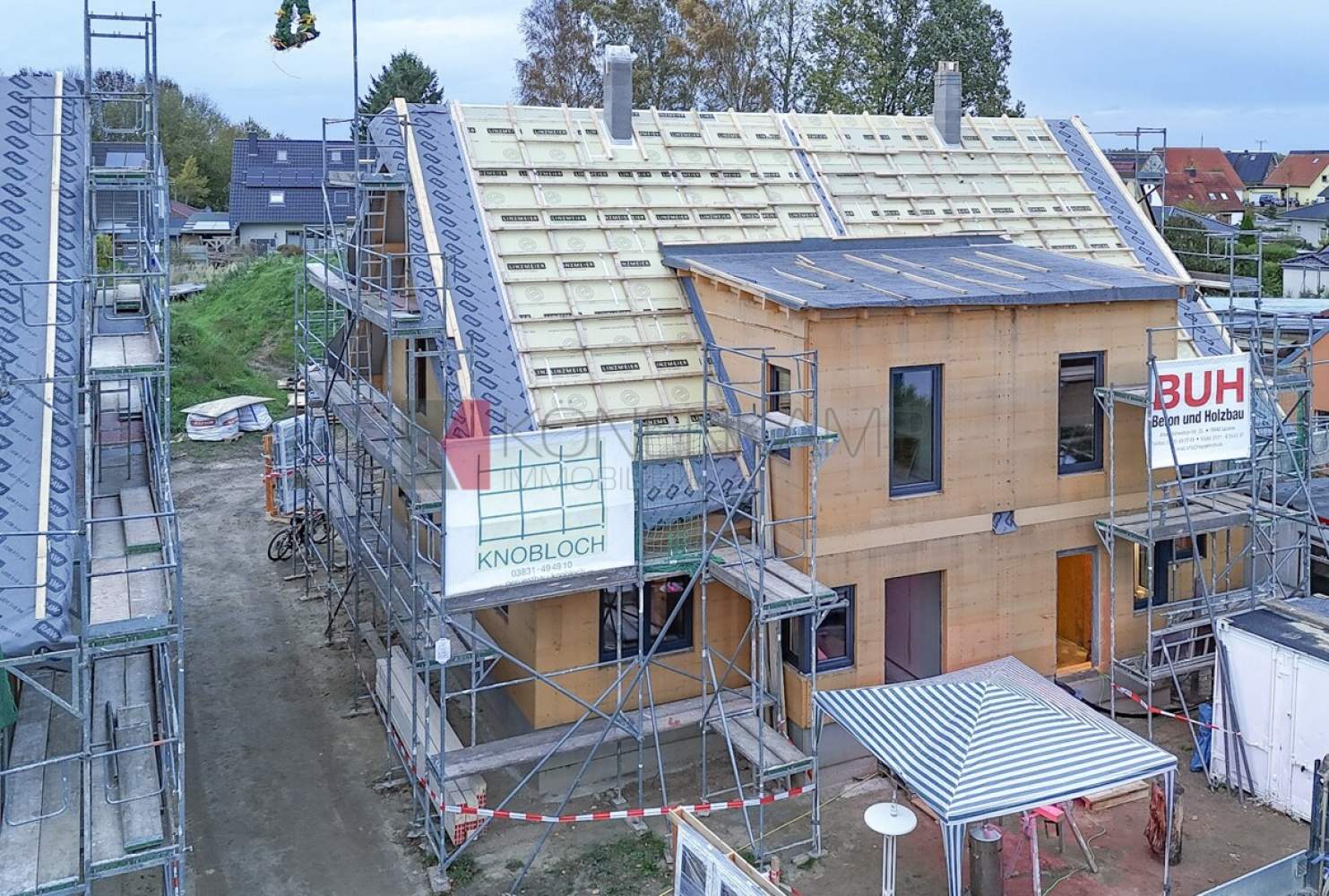 Die Zimmer verfügen in der Dachfläche über große Dachfenster-Lichtelemente von Velux, bzw. über Boden stehende Fenster. Das Haus ist mit hochwertigen Materialien ausgestattet, darunter mit einer vollflächigen modernen Fußbodenheizung in allen Zimmern und auf allen Etagen. Die Wärme wird auf der Basis hoch energieeffizienter Heiztechnik mit Luft-Wasser Wärmepumpentechnologie erzeugt. Schützend um das Haus wurde eine wärmegedämmte mineralische Putzfassade mit ökologisch unbedenklicher Wärmedämmung und einem hoch wärmegedämmten Fußboden im Erdgeschoss verbaut.